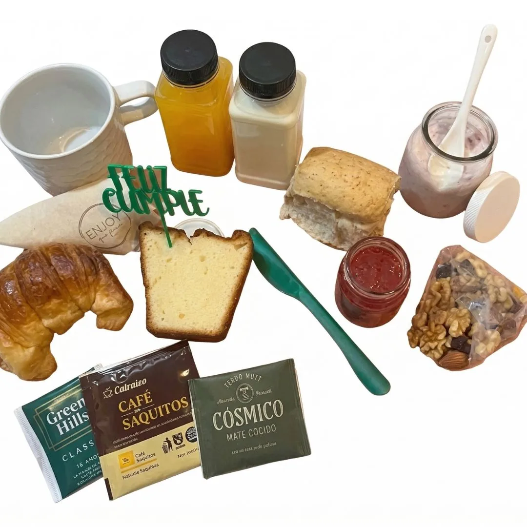 La Box Desayuno Premium incluye una combinación perfecta de sabores frescos, presentada en formato boutique lista para regalar en el día.